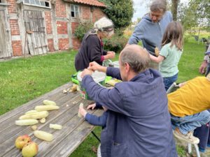 Thematisch gibt es viele Berührungspunkte zwischen der Solawi und der Genossenschaft – wir wollen in Kontakt bleiben und sehen, was wir zusammen machen können. Zum Abschied freuten sich die beiden Gäste über unseren Spaghetti-Kürbis und versprachen, ein Bild zu schicken wenn er verarbeitet ist.